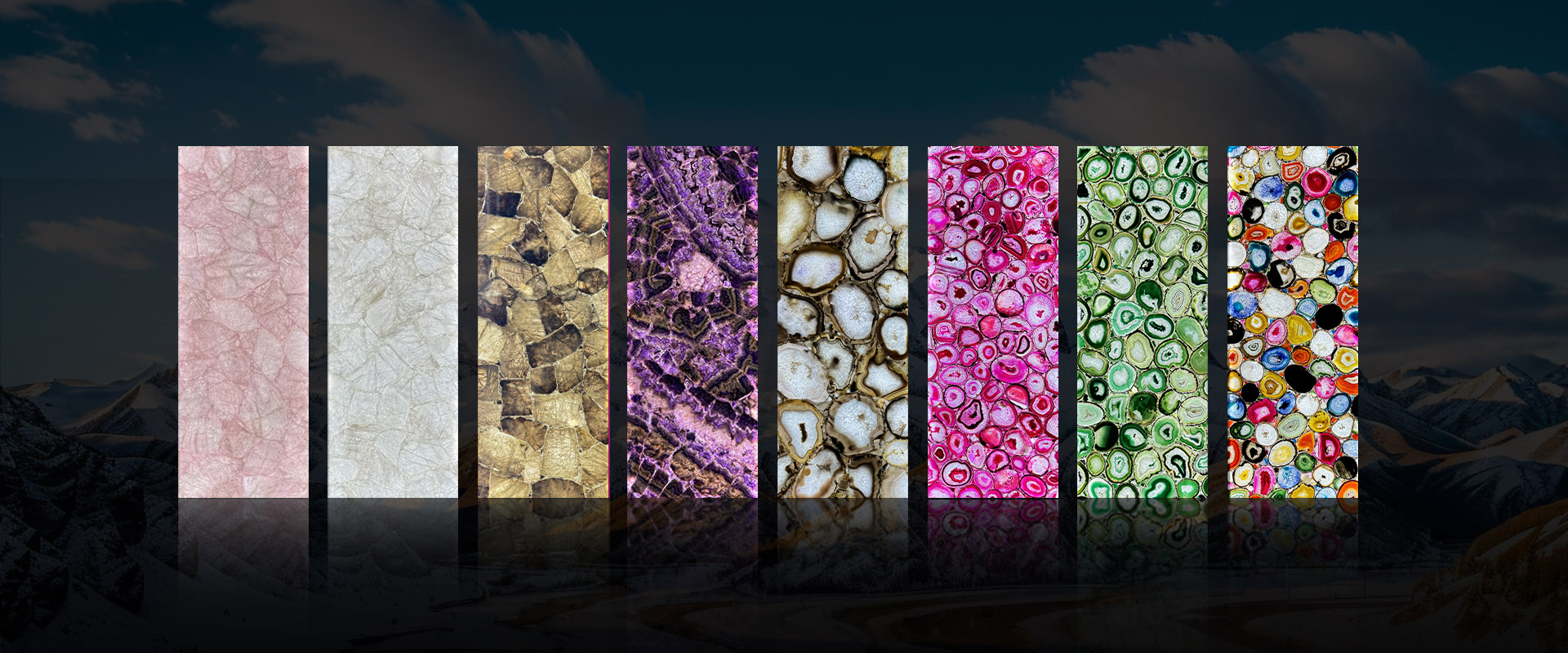 我们的产品涵盖半宝石板材、透光装饰板、宝石家具、定制艺术装置等,